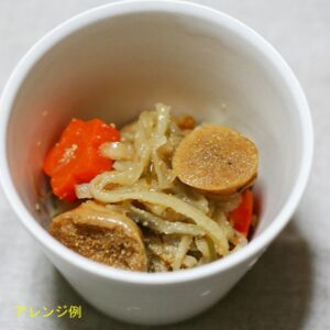 浅炊たらこ昆布と切干大根の煮物 TAKANASHI | 2025年5月28日 【材料】 たらこ昆布 100g 切干大根 1/2袋 干ししいたけ 5個 人参 ごま油 大さじ1 【作り方】 ①切干大根を手で揉みほぐして洗い、水につけて30分おく。 ②干ししいたけを戻し、人参を好きな形に型抜きする。 ③ごま油を鍋に熱し、切干大根、しいたけ、人参を入れてざっと炒める。 ④水600ccを入れて、たらこ昆布を加え、汁気がなくなるまで中火で煮る。 ⑤お皿に具材をそれぞれ盛り合わせて、出来上がり。 簡単アレンジレシピ タグ: 羽田大谷の浅炊たらこ昆布