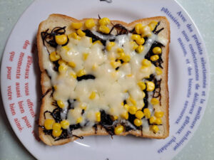 <材料> 一人分 食パン 1枚(厚さはお好み / 6枚切りがおすすめ) マヨネーズ 大さじ1/2 コーン 大さじ2 *冷凍のコーンを使う場合は、あらかじめコーンを小皿に移し、 ラップをかけ、レンジで2…